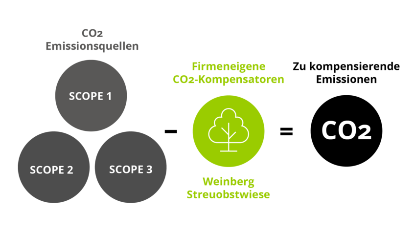 Nun rechnen wir die CO₂-Quellen aller Unternehmensaktivitäten in kg CO₂ um. Dies erfolgt mit dem CO₂-Kalkulationsschemas vom Bundesamt für Umwelt und der gemeinnützigen Organisation Naturefund. Von der berechneten Gesamtmenge ziehen wir die durch unsere Streuobstwiese und unseren Weinberg kompensierte CO₂-Menge ab. So erhalten wir jedes Jahr den syracom-CO₂-Fußabdruck.