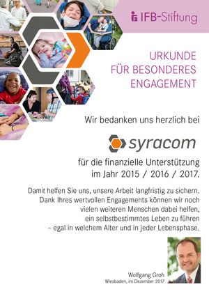"Excellence out of passion. Skills without social values are worthless to us." I got to know all this and more every time I came into contact with syracom. My area - seriously ill children. The difference could not be greater and yet we are so close. In our guiding principles, which we live by every day. Without passion and social values, our work and care for our special children would not be possible. Meeting equal partners is a gift, as is syracom's incredible support for the Zwerg Nase Haus. This year syracom celebrates its 20th anniversary. All the best from the bottom of our hearts. Continued successful ideas, the usual competence and quality - WE - have long been convinced!
