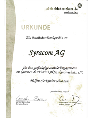 Child abuse is one of the worst and unfortunately most common crimes worldwide.Under the motto "For the good of the children", syracom has been supporting the Aktionkinderschutz e.V. association since 2012.