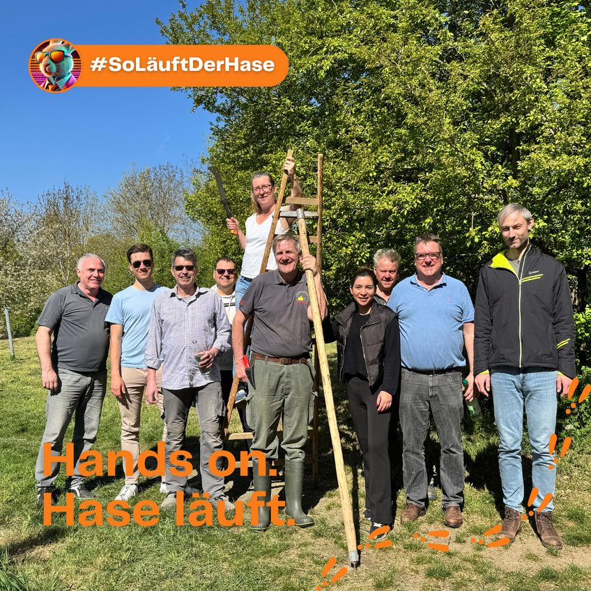 Weiter ging mit der Auszeichnung zu den Besten Unternehmensberatern 2025 – diese erhält syracom nun schon seit 10 Jahren. Dafür gibt es von mir den Doppel-Trommler-Wirbel. So läuft der Hase. Aber glücklicherweise gibt es bei all den komplexen Themen, die mich und meine Kollegen beschäftigen, auch immer wieder entspannte gemeinsame Stunden. So konnten ich beispielsweise bei wunderbaren Frühlingsbedingungen auf der syracom-Streuobstwiese ein paar Haken um die 20 Obstbäume schlagen. Vom Baumschnitt selbst habe ich keine Ahnung, aber dazu gab es genug alte Hasen vom Streuobstkreis, die sogar auf Leitern klettern konnten.