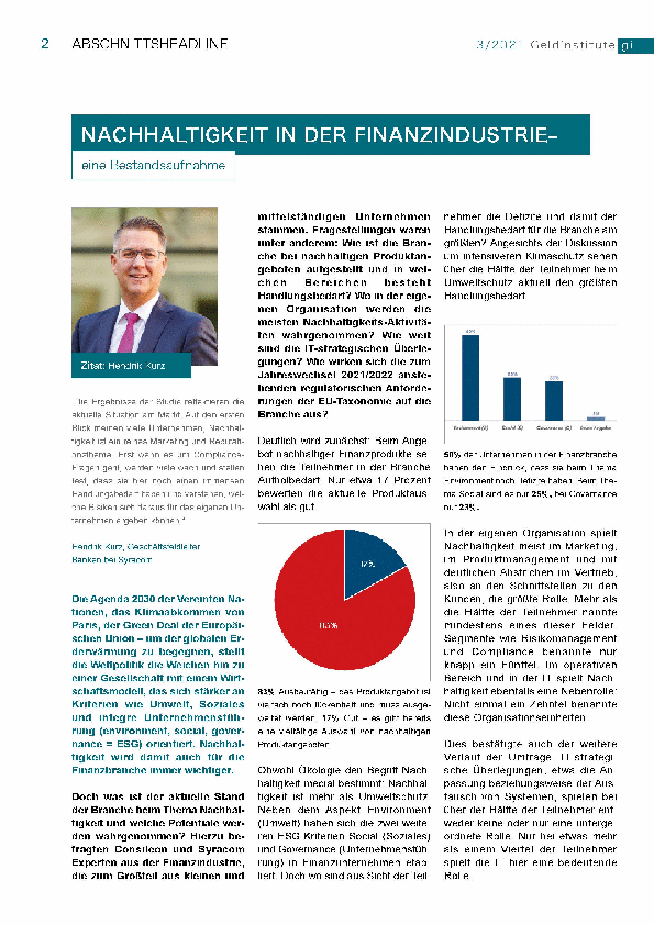 Wie ist der aktuelle Stand der Branche beim Thema Nachhaltigkeit, welche Potentiale werden wahrgenommen? Erste Ergebnisse der von syracom und Consileon durchgeführten Studie.