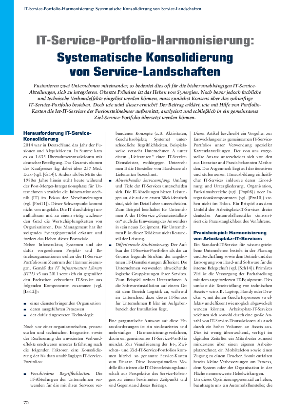 Systematische Konsolidierung von Service-Landschaften: Fusionieren zwei Unternehmen miteinander, so bedeutet dies oft für die bisher unabhängigen IT-Service-Abteilungen, sich zu integrieren. Oberste Prämisse...
